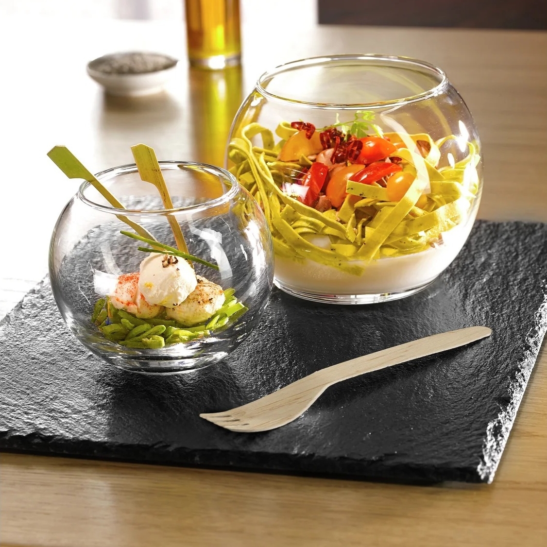 La Bouchee brings you a high-quality verrine that you can trust to hold up well in both indoor and outdoor food environments. Our verrines can be used to serve tasting plates, appetizers, desserts, mise en bouche to create a lovely tasting menu in your restaurant, or for your next event. No matter, how you use our verrine, you are sure to create a sensational food presentation. Don’t wait, try them today.