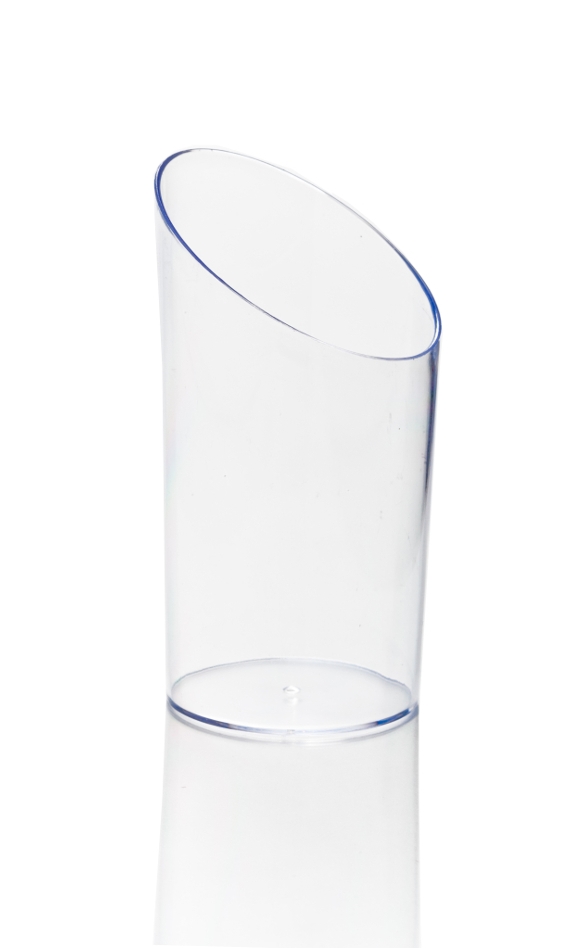The 3 oz Round Clear Incline Plastic Shot Glass is clear and stylish. Also, it works for smoothies, layered desserts, or gazpacho. In addition, it adds style to any table. For example, serve single servings with ease. Then, every dish looks neat.
