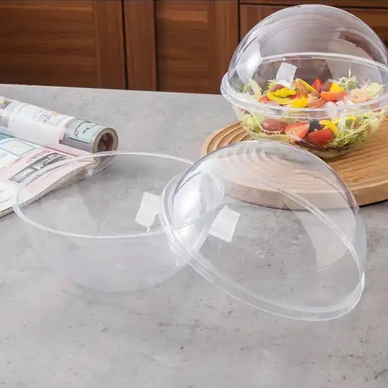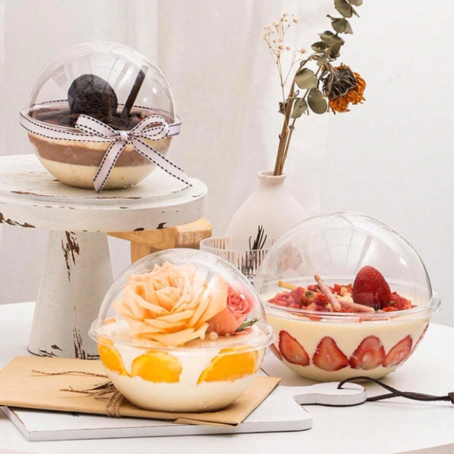 Serve in style with our 15+15 oz Clear Plastic Sphere Container. It’s a modern and elegant option for salads, fruits, and desserts.