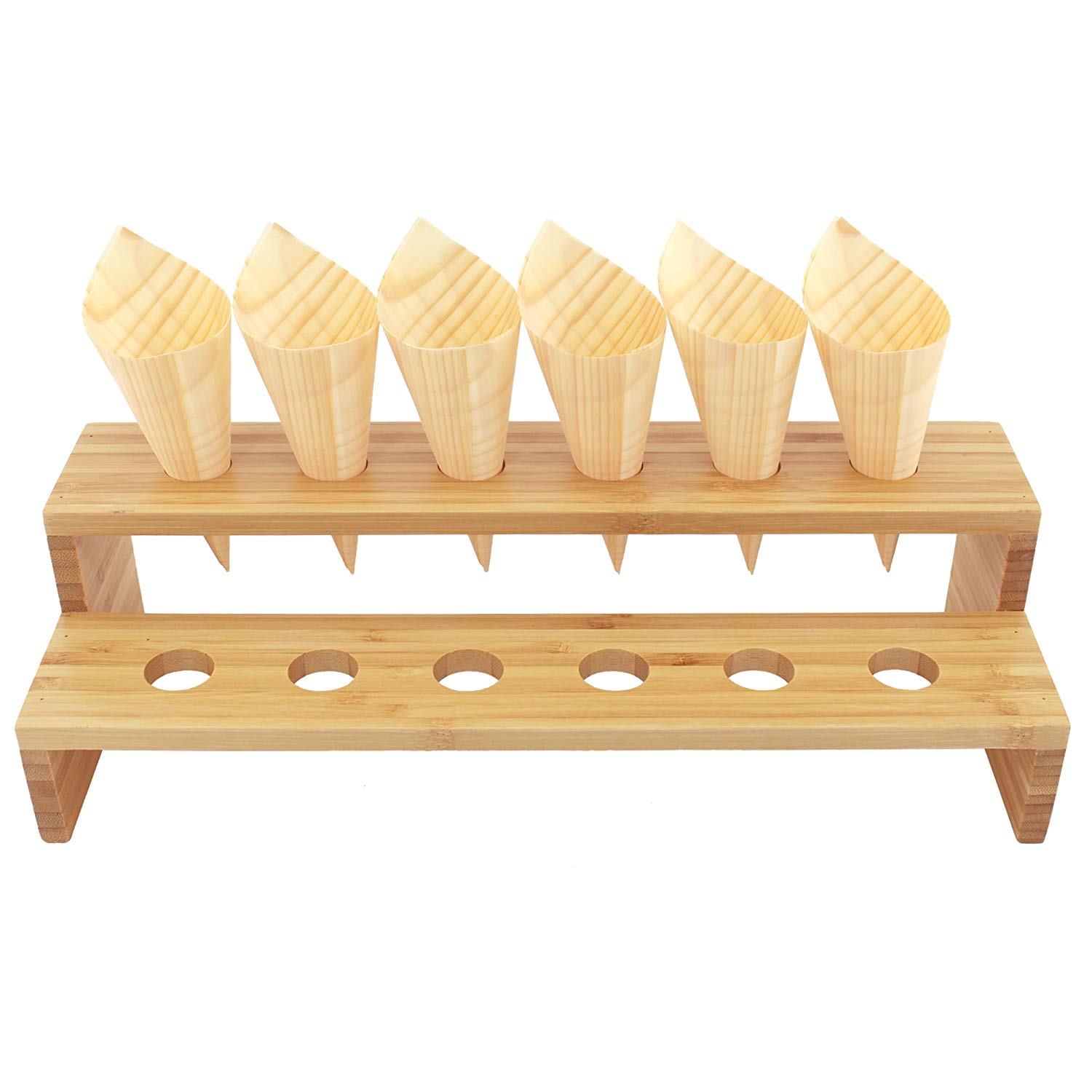 Multi-Level Straight Bamboo Cone Stand – 12 slots – 13″x 4.9″x 3.5″