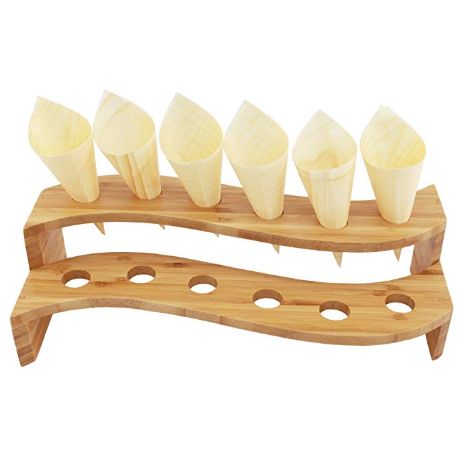 This cone holder has a smooth bamboo finish. It is strong and chip-resistant, so it stays in great condition. As a result, it is ideal for busy events and regular use.