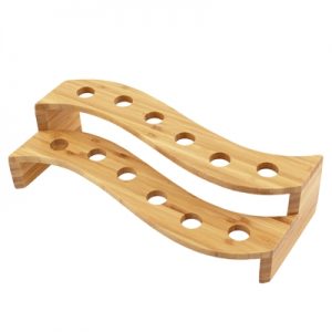 The stand features 2 levels with 6 slots on each row, giving you 12 holes in total. Each hole is 1 inch wide, making it perfect for our Natural Wood Cones in medium and large sizes. Additionally, it comes in a box with one stand included.